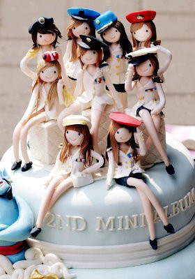 Lihat yang satu ini! Para personel SNSD berpose cantik dengan kostum 'Genie' di kue untuk merayakan rilisnya mini album kedua. Semuanya dibuat sama persis hingga gesture mereka. Bisa tebak siapa yang mana?