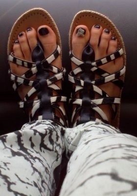 Tak hanya di tangan, kuku kaki juga tak mau ketinggalan. Hongki mengecat kuku kakinya dengan cat kuku hitam dan memasang hiasan tengkorak di jempolnya. Wow!