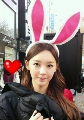Ini saat Minkyung mengenakan bando kelinci. Ia tetap terlihat cantik meski hanya difoto di pinggir jalan dengan jaket hitam tebal.