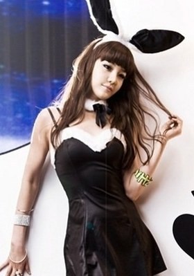 Member 2NE1 Park Bom selalu membuat iri dengan tubuhnya yang berisi namun seksi. Ini saat Bom mengenakan kostum bertema kelinci berbulu hitam dan putih.