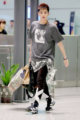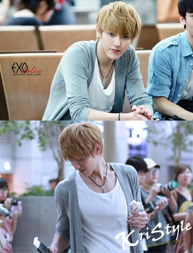 Sepatu, celana panjang, kaos, blazer, topi dan kaca mata hitam menghiasi penampilan Kris saat itu. Kris juga sempat beramah-tamah dengan fans sebelum akhirnya kembali ke dorm dan bertemu dengan para member EXO.