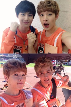 "EXO Fighting!! Suho jjang jjang man!" tulis Henry bersama fotonya dengan Suho sementara di tempat berbeda, Henry yang saat itu berpakaian oranye berfoto dengan Kris dan menulis, "Archery go go go!! Sexy Kris!"