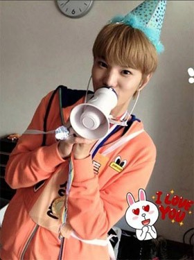 "Inspirit, aku cinta kalian!" di akun Twitter-nya @infiniteyounges. Sungjong menggunakan topi kerucut khas pesta ulang tahun sambil membawa sebuah mini megafon dalam foto tersebut.