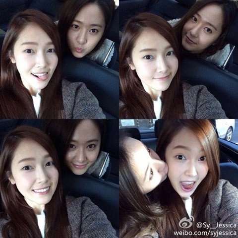 Lewat akun Weibo-nya @Sy_Jessica, Jessica mengunggah sebuah foto bersama Krystal. Keduanya tampak sedang berada di dalam sebuah mobil dan Krystal tampak mencium pipi sang kakak.