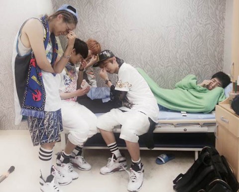 "Semuanya, lekas tidur. Ini ketika kami mengunjungi Baro di rumah sakit. Tetapi para member sehat-sehat saja sekarang. Dan BANAs, jangan kena flu!" tulis Gongchan.