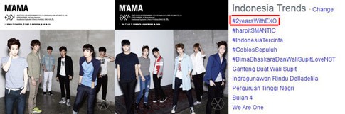 Meski belum punya fanclub resmi dan sebutan untuk nama fans, penggemar grup yang dipimpin Suho dan Kris itu merayakan dua tahun debut EXO sejak semalam. Hashtag #2yearsWithEXO pun masih menjadi trending topic sampai pagi ini.