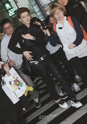 Kamis (24/4/2014), keenam member EXO-M pulang ke Korea. Mendarat di Bandara Incheon, Korea Selatan, mereka tampak berpakaian serba hitam.