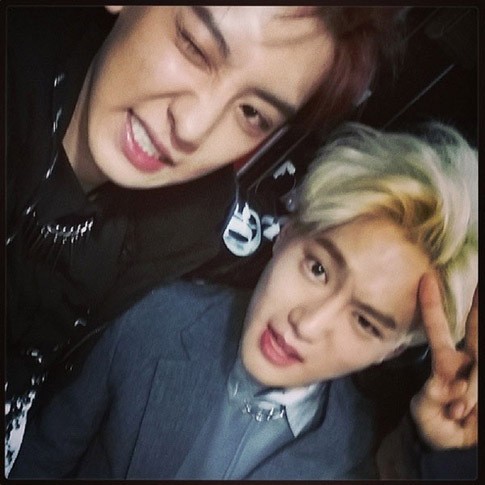 Foto itu tampaknya diambil di belakang panggung saat promosi 'Overdose'. Keduanya tampak bergaya lucu dalam foto tersebut.