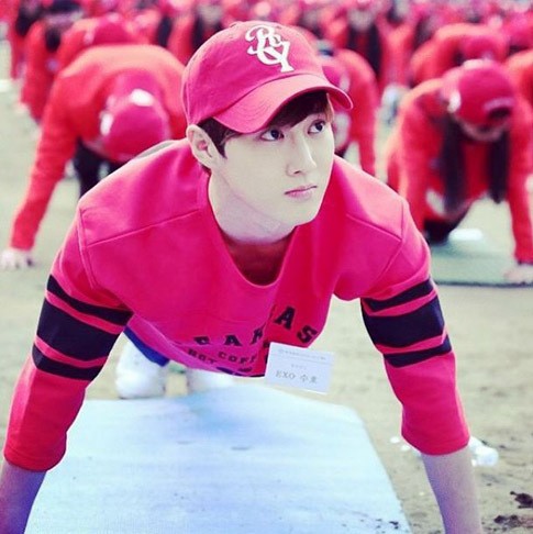 Sebuah foto Suho juga diunggah Sehun lewat akunnya. Tampak Suho sedang bersantai dan membawa sebuah gelas air minum dalam foto tersebut.