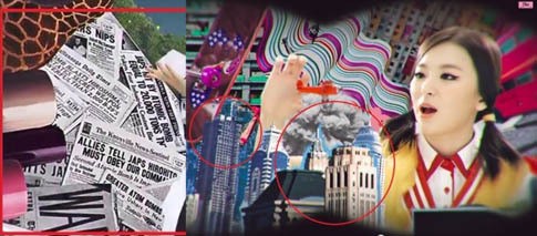 Di video yang sama, gedung World Trade Center (WTC) dalam tragedi 9/11 juga muncul. Salah satu membernya, Seulgi, tampak memegang mainan pesawat yang di depannya terlihat WTC yang sudah berasap tebal.
