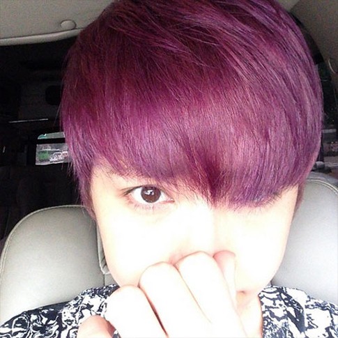 "Hair transformation!" tulisnya sambil mengunggah foto bagian depan rambutnya. Sebelah matanya tampak tertutup oleh poni dengan tangan kiri menutupi hidung dan mulut.