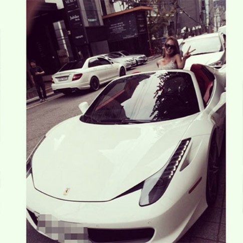 Pelantun 'The Boys' tampak berseri-seri dalam foto di atas mobil Ferrari tersebut. "Nice car. 4 3 2 1 go!" tulis Hyoyeon.