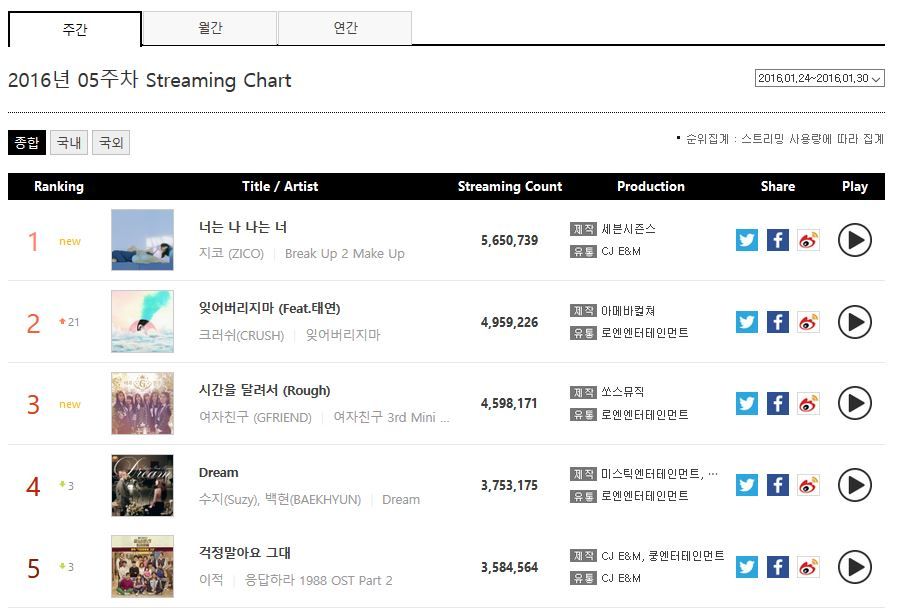 Pantauan detikHOT di situs resmi Gaon Chart pada Kamis (4/2/2016), lewat single terbarunya itu Zico di antaranya chart streaming, download, digital dan social untuk lagu 'I Am You, You Are Me' yang diluncurkan 25 Januari lalu itu.