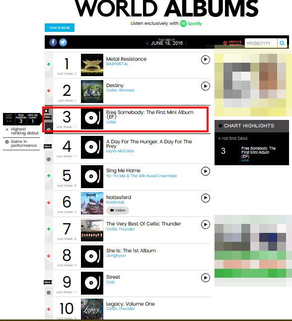 Luna tercatat sebagai pendatang baru pekan baru di chart pekan ini. Namun sudah bisa duduk di peringkat 3 mengalahkan beberapa nama musisi lainnya.