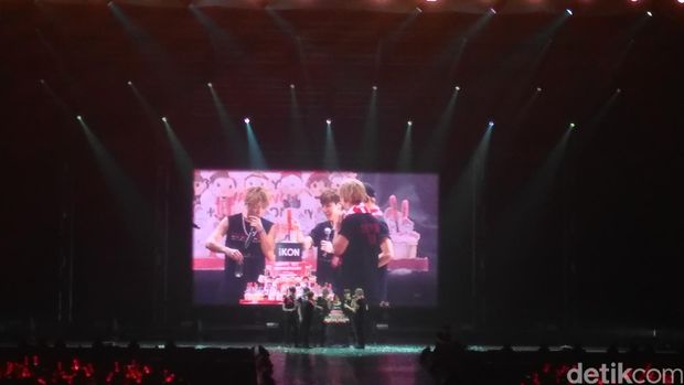 "Happy birthday iKON!," teriak salah satu personil iKON yang semakin mengundang teriakan histeris iKONIC.