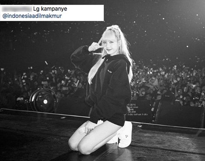 Ia justru membawa salah satu jargon yang dimiliki seorang pasangan capres dan cawapres di Indonesia.Β Dok. Instagram/lalalalisa_m