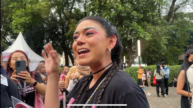 "Aku antre dulu. Aku mau lihat Jisoo dan Lisa," ujarnya sambil terburu-buru di kawasan Stadion Utama Gelora Bung Karno, Senayan, Jakarta Pusat, Minggu (12/3/2023).