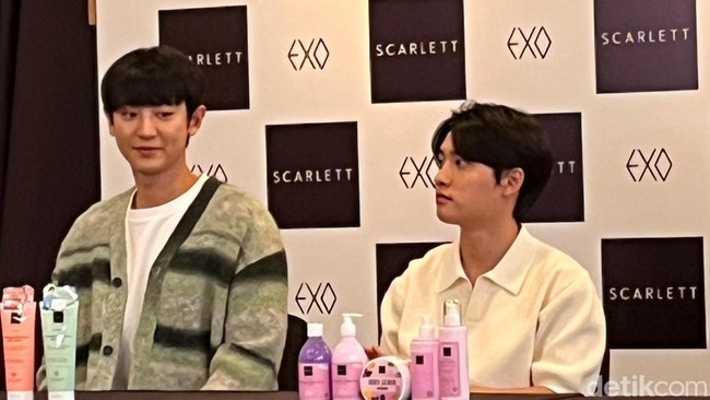 EXO lagi di Jakarta. Mereka datang untuk menghadiri event meet & greet produk skincare Scarlett yang digelar di Beach City International Stadium, Minggu (27/8/2023). Sebelum menyapa EXO-L (sebutan buat penggemar EXO), enam member, yakni Suho, Baekhyun, Chanyeol, D.O, Chen, dan Xiumin menggelar konferensi pers.