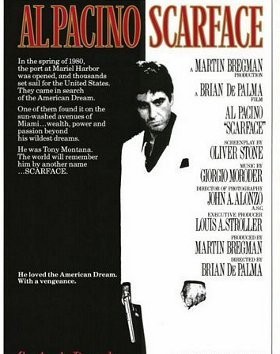 Film tersebut cerita tentang pengungsi asal Kuba, Tony Montana yang mengunjungi kota Miami, Amerika Serikat pada 1980 sebagai bagian dari Mariel Boatlift, imigrasi besar-besaran dari Kuba ke Negeri Paman Sam.