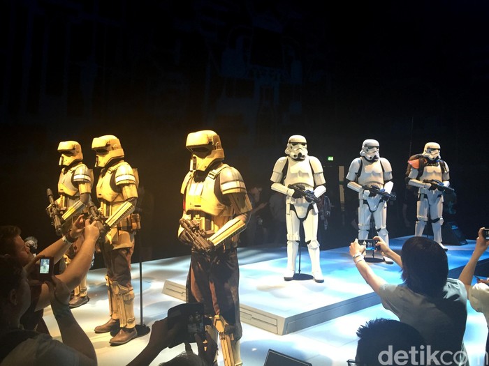 live show menarik, Star Wars Celebration Europe 2016 juga menampilkan deretan kostum dan properti untuk film 'Rogue One: A Star Wars Story.' Ratusan penggemar pun rela antre lebih dari satu jam menunggu giliran masuk ke dalam area pameran di London ExCel Exhibiton Centre, London, Inggris, Sabtu (16/7).