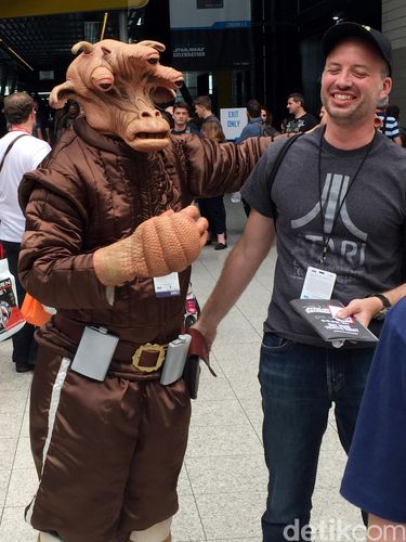 Ada seorang ayah memakai kostum Master Jedi sambil menggandeng anaknya yang berseragam pasukan Empire Galaxy, meskipun dalam film dua karakter tersebut berseberangan. Penggemar tak hanya memakai kostum dari para tokoh baik yang percaya kekuatan The Force, banyak juga alien berseliweran dengan beragam bentuk yang unik.