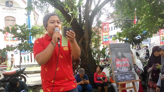 Mengiringi momen pemutaran film 'Istirahatlah Kata-kata', edisi Minggu (22/1) kemarin mereka menggelar pembacaan puisi edisi khusus Wiji Thukul. Acara ini terbuka bagi siapapun untuk ikut bergabung membacakan puisi.