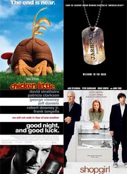 Jakarta - 4 November 2005, Walt Disney Pictures merilis 'Chicken Little'. Film ini berkisah tentang seekor anak ayam yang sedih lantaran dianggap tak berguna.Dibantu tiga sahabatnya, anak ayam berkacamata itu memutuskan untuk mengubah imejnya. Sukseskah dia? Kalau mau tahu, Anda harus menyaksikan sendiri kisahnya. Namun di tangga box office, 'Chicken Little' sukses menjadi jawara. Minggu ini, seperti dilansir dari yahoomovies, Selasa (8/11/2005), 'Chicken Little' sukses menjadi film terlaris minggu ini. Hanya dalam waktu tiga hari, film berdurasi 1 jam 21 menit ini sukses meraup pendapatan tak kurang dari US$ 40,1 juta atau sekitar RP 407 miliar. Di posisi dua box office ada 'Jarhead'. Film ini diangkat dari buku karangan Anthony Swofford, marinir AS yang pernah bertugas di Saudi Arabia. Dalam bukunya yang dirilis 2003 lalu, Swofford berkisah tentang pengalamannya menghadapi badai padang pasir juga peperangan di Kuwait. 'Jarhead' yang dibintangi Jake Gyllenhall dan Jamie Foxx harus puas dengan pendapatan US$ 27,7 juta. Posisi tiga sampai enam berturut-turut diduduki 'Saw II', 'The Legend of Zorro', 'Prime' dan 'Dreamer: Inspired by a True Story'. Tepat di bawah keempat film tersebut ada 'Good Night, Good Luck'. Film drama yang dibintangi George Clooney dan Robert Downey Jr. ini bercerita tentang dunia jurnalisme di tahun 1950-an. Urutan sembilan box office minggu ini diisi oleh 'Shopgirl'. Film percintaan ini dibintangi Claire Danes, Steve Martin dan Jason Schwartzman. Daftar box office minggu ini seperti dilansir dari yahoomovies, Selasa (8/11/2005):1. Chicken Little2. Jarhead3. Saw II4. The Legend of Zorro5. Prime6. Dreamer: Inspired by a True Story7. Good Night, And Good Luck.8. The Weather Man9. Shopgirl10. Flightplan. (ine/)