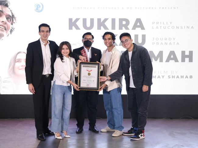 Prilly Latuconsina sedang bahagia. Film garapannya yang berjudul Kukira Kau Rumah dapat rekor MURI.