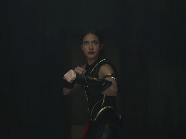 "Kamu adalah titisan Dewi Asih selanjutnya," suara Christine Hakim disambut lagi dengan lagu Muse dan superhero landing Pevita Pearce yang kini sudah mengenakan kostum jagoannya.