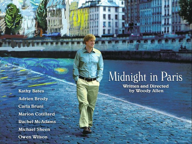 Film yang dibintangi oleh Owen Wilson dan Rachel McAdams ini dirilis pada tahun 2011. Berdasarkan versi Rotten Tomatoes, film ini mendapatkan rating 93 persen. Kisahnya mengenai seorang penulis yang secara misterius kembali ke tahun 1920-an setiap hari pada tengah malam. Gil Pender berlibur di Paris bersama tunangannya. Namun, dia melakukan tur keliling kota sendirian. Suatu ketika saat dirinya melakukan perjalanan di malam hari, dia bertemu dengan sekelompok orang yang aneh. Mereka tampak akrab dan secara tak sadar membawanya ke masa lalu untuk bermalam dengan beberapa ikon seni dan sastra zaman Jazz. Semakin banyak waktu yang dihabiskan Gil dengan para pahlawan budaya di masa lalu membuatnya semakin tidak puas dengan kehidupannya di masa kini.
