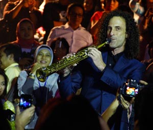 Hanya berselang dua menit, Kenny tiba-tiba muncul dari bagian tribun. Sekitar 500 orang yang memadati arena konser langsung heboh. Kelas-kelas penonton dalam penonton tersebut semua disusun secara bertingkat dengan tempat duduk. Mereka memilih meninggalkan tempat duduknya untuk mendekati sang maestro saksofon.