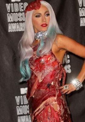 Masyarakat heran dengan ide daging mentah yang disulap menjadi gaun tersebut. Gaun tersebut dirancang perancang busana asal Argentina Franc Fernandez dibantu Nicola Formichetti. Kini gaun fenomenal tersebut terpajang di The Rock n Roll Hall of Fame di Cleveland sebagai bagian dalam pameran 'Women Who Rock: Vision, Passion, Power'.