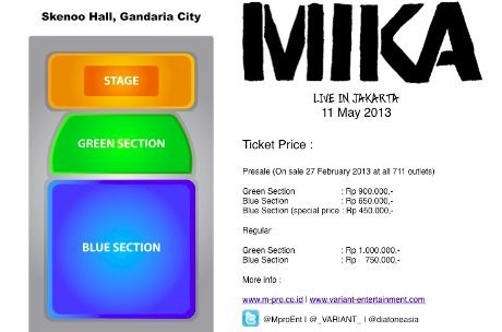 Mika Konser di Jakarta 11 Mei - detikHot Senin, 25 Feb 2013 17:11 WIB Layout venue konser Mika (ist.) Jakarta - (dee/mmu) Infografis Lainnya Infografis Infografis Urutan Penerus Takhta Kerajaan Inggris Infografis Infografis Ini Jadinya House of Dragon Dibuat Versi Indonesia Infografis Catat! Ini Prokes yang Perlu Diterapkan untuk Pertunjukan Seni