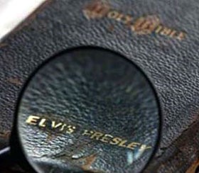 Lebih dari 300 orang secara online di seluruh dunia bersaing mendapatkan Alkitab milik pelantun 'Jailhouse Rock' tersebut. Alkitab 1,600 halaman ini didapat oleh Elvis dari pamanya saat Natal 1957.