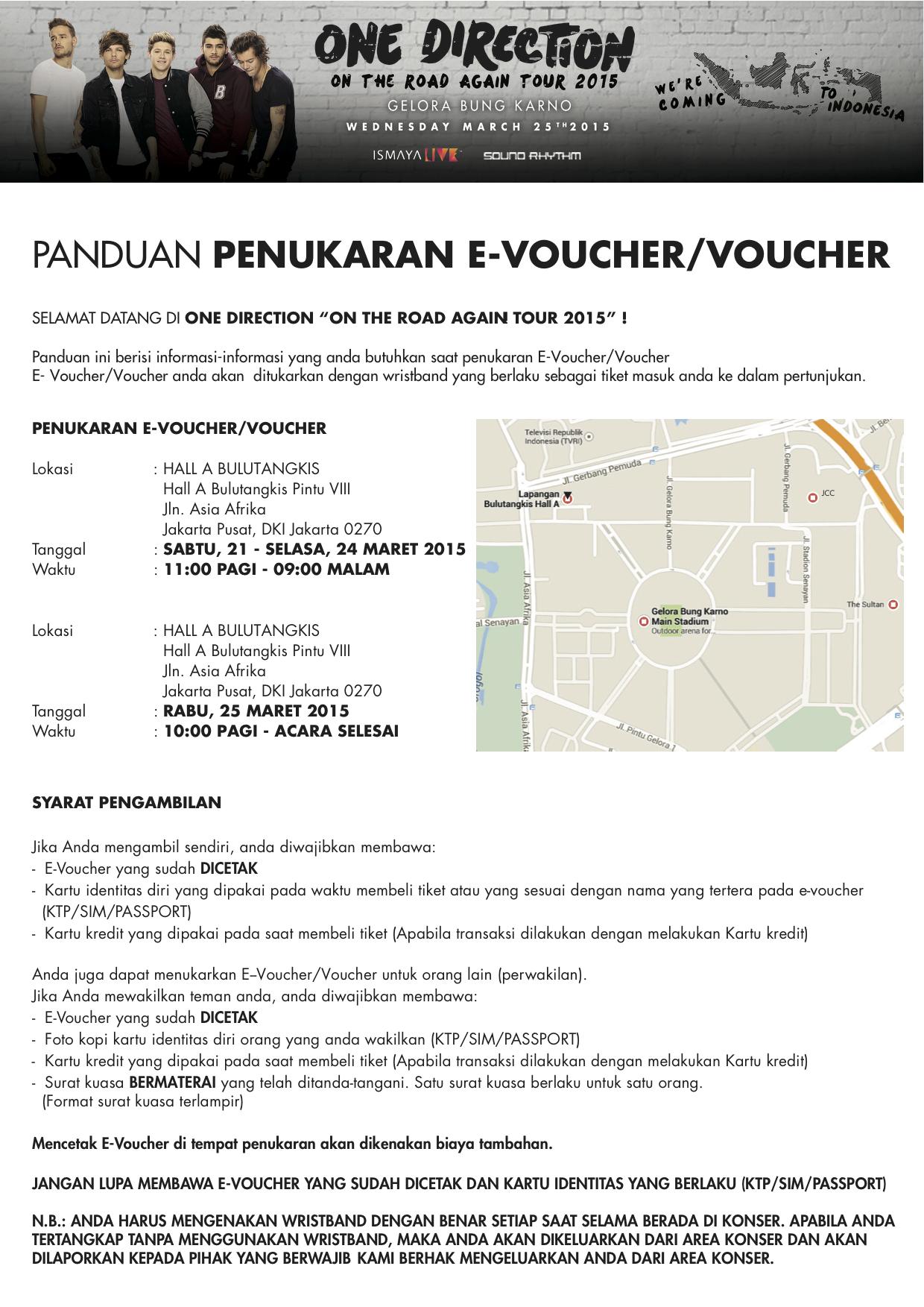 Lewat akun Twitter resminya, pihak promotor konser 1D, Ismaya Live pun mengumumkan hal tersebut. Mereka menuturkan bahwa proses penukaran tiket akan dilakukan di Hall A Bulutangkis Senayan.
