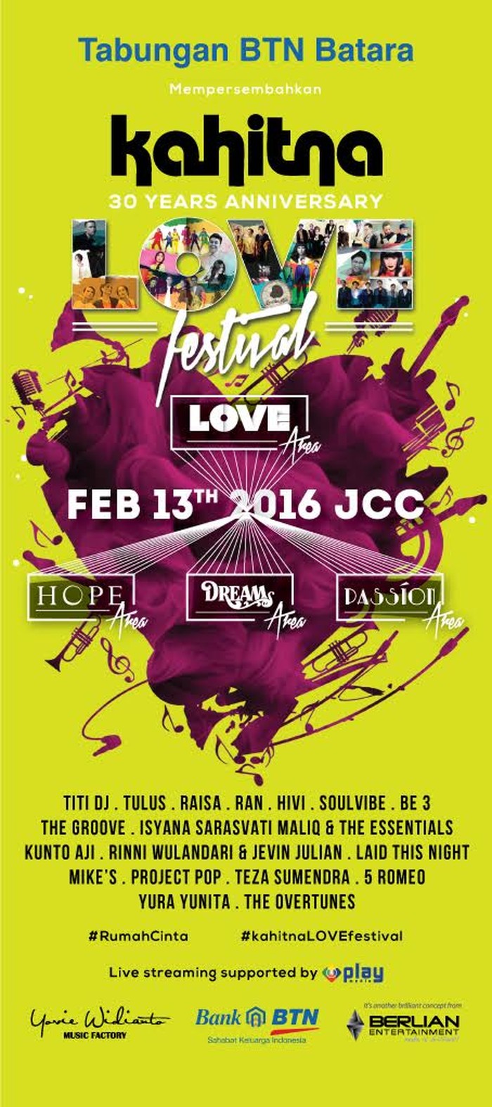 Tiket sendiri dibanderol dengan harga Rp 409 ribu. 'Kahitna 30th Years Anniversary Love Festival' dibuat seperti layaknya festival musik.