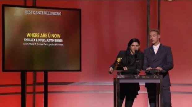 Terlihat dari foto-foto yang diunggah The Grammys, Diplo dan Skrillex mengambil sendiri pialanya. Dengan setelan jas, keduanya berdiri di atas podium kemenangan.