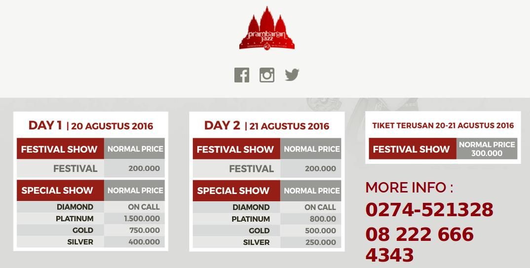 ![]() Rincian kategori tiket 'Prambanan Jazz 2016' |