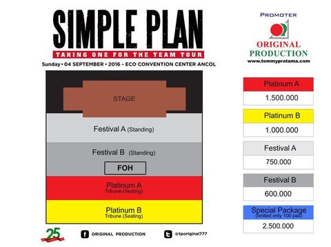 Lewat akun Twitter-nya, Original Production pun membagikan informasi seputar harga tiket tersebut. Tiket paling murah di kelas Festival B dipatok seharga Rp 600 ribu.