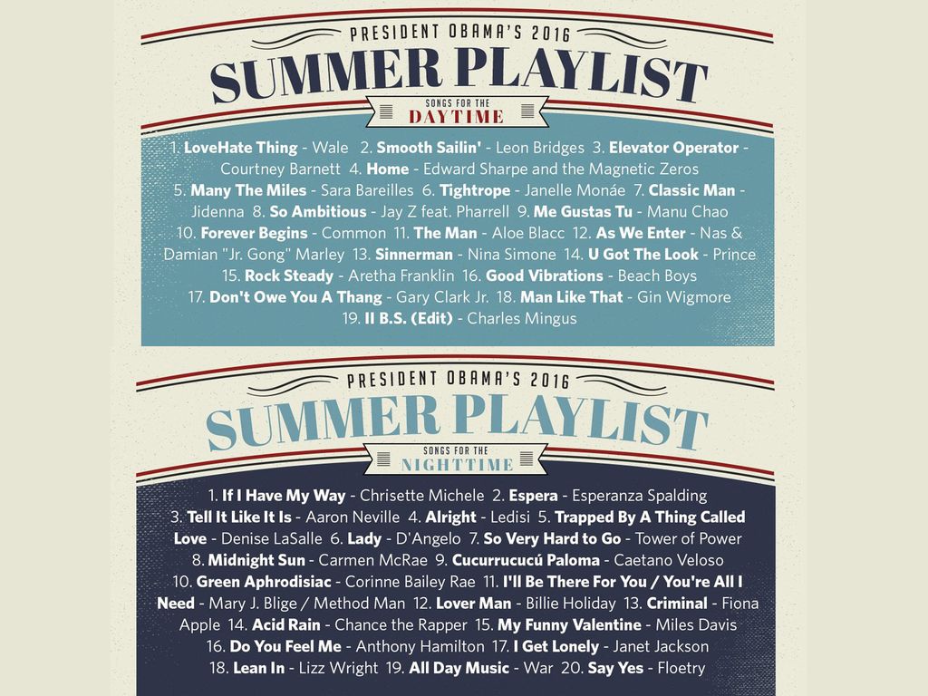 Dari NME yang dikutip detikHOT, Jumat (12/8/2016), daftar lagu tersebut diberi nama 'President Obama's 2016 Summer Playlist'. Bahkan Obama membagi lagunya menjadi dua, untuk didengarkan siang dan malam.