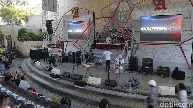 Bedanya dengan panggung lain, Amphiteater Stage punya tempat duduk untuk penontonnya. Terlebih ada atap yang membuatnya lebih teduh di sore hari.