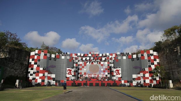 Pantauan detikHOT di lokasi, Sabtu (3/9/2016), panggung-panggung sudah berdiri megah di kawasan GWK. Total ada empat panggung besar dan satu panggung kecil yang disiapkan Soundrenaline 2016.