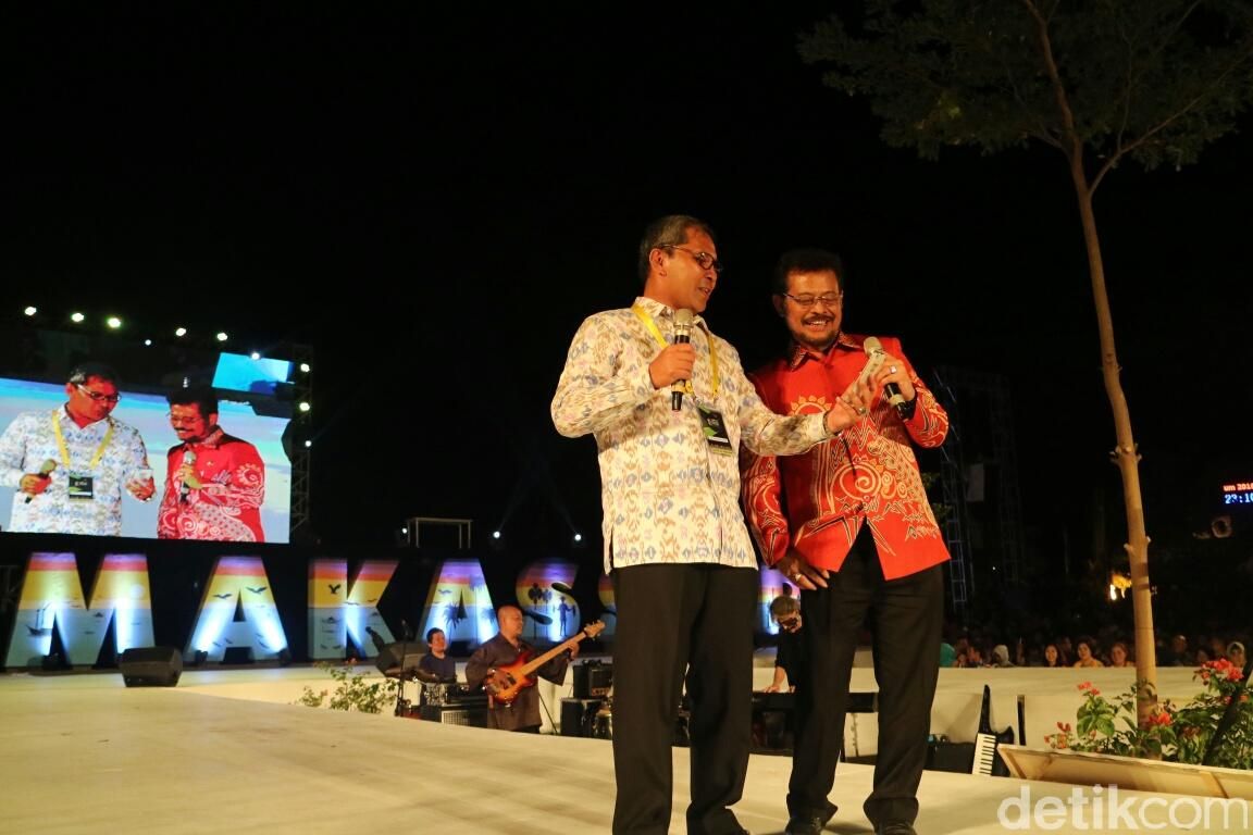 Pada saat menyanyikan tembang Sakura, Fariz mengajak Gubernur Sulsel Syahrul Yasin Limpo dan Walikota Makassar Ramdhan Pomanto ikut bernyanyi di atas panggung.