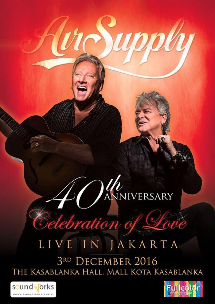 Namun jangan terlalu bersedih, sebab konser itu sudah dijadwalkan ulang. Air Supply bakal tetap menjumpai penggemarnya di Jakarta pada 4 Maret 2017.