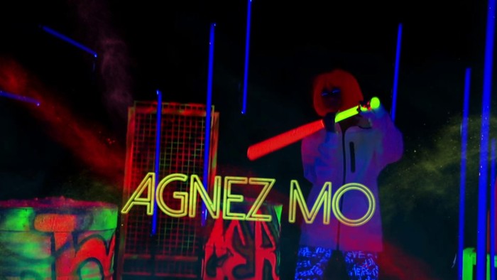 Agnez juga tampak menggenggam tongkat baseball yang berwarna merah dan hijau stabilo. Musik elektronik pun terdengar melengkapi aksinya pada video tersebut.