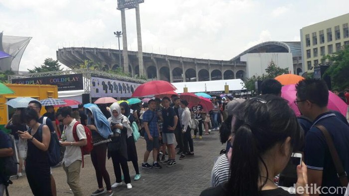 Lewat pantauan detikHOT, Jumat (7/4/2017), para calon penonton sudah antre untuk menyaksikan band tersebut sejak pagi. Hingga siang ini, antrean tersebut semakin memanjang.
