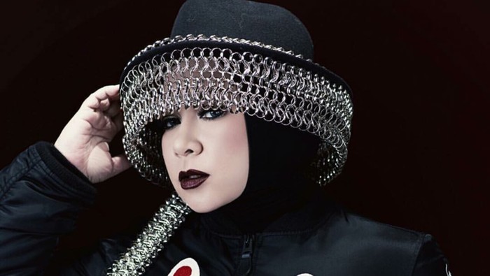 Ada lagi cerita Melly yang kini tampil berhijan sejak empat tahun lalu. Malam itu, Melly tampil dengan kostum avant garde-nya dengan aksesoris unik di atas kepalanya. Seperti yang biasa ditampilkan oleh Melly dalam setiap pertunjukannya, kali ini ia pun terlihat mencolok.