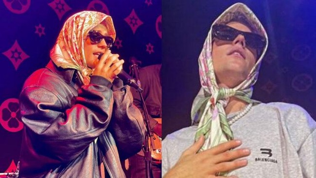 Justin Bieber kembali membuat kontroversi. Ia terlihat manggung dengan jilbab.