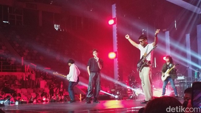Baskara Putra sebagai vokalis pun tampak santai sambil tetap menguasai panggungnya. Penampilannya pun santai dengan menggunakan kaos berwarna hitam.