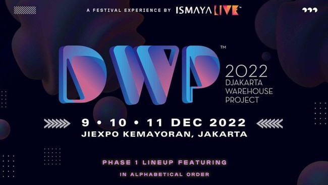 DWP 2022 bakal digelar selama tiga hari pada 9, 10, dan 11 Desember 2022 di JIExpo Kemayoran, Jakarta.